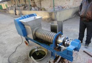 壓榨機(jī)的工作原理【2018/03/13】雙螺旋式壓榨機(jī)工作過程是:輸送螺旋將進(jìn)入料箱的物料推向壓榨螺旋,通過壓榨螺旋的螺距減小和軸徑增大,并在篩壁和錐形體阻力的作用下,使物料所含的液體物(果汁)被擠壓出.擠出的液體從篩孔...